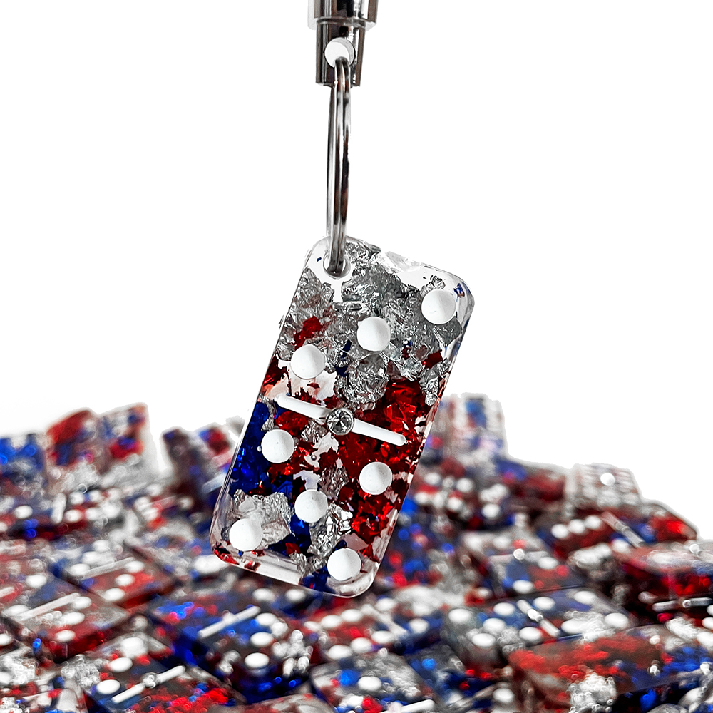 Whether you’re flexin’ it on your keys or your bag, this domino is all about loud pride and loud style. Perfect for the one who slams their domino down with sazón and a little extra flair.